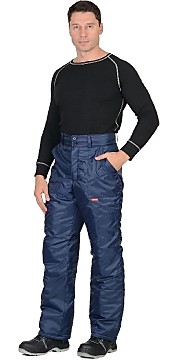 Описание: Брюки прямые, с притачной утеплённой подкладкой, с центральной застежкой гульфика на тесьму - «молния», широким поясом, с застежкой на две обметанные петли и пуговицы, пятью шлёвками: две на передней, и три на задней части пояса, с боковыми накладными карманами с наклонным входом.