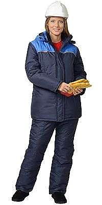 Тк. "Таслан", 100% п/э. Утеплитель: синтепон, в куртке 360 г/кв.м., в п/комб. 240 г/кв.м. Подкладка: 100% п/э. Куртка с капюшоном и СВ кантом. ГОСТ Р 12.4.236-2007.
